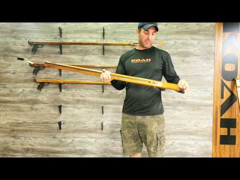 Equipped with 9/32 poured enclosed track , two 5/8 bands, reverse trigger mechanism for an additional two inches of band stretch and an aggressive rake (angle) handle to even out the weight of having the entire stock in front of you. The muzzle and side channels were designed to pull the inner band close to the shaft, down the length of the speargun to create lateral band pull which greatly reduces recoil. Guns are measured from front of Trigger mechanism to tip of muzzle. Total stock (from gun butt to tip of muzzle) is as follows... 90cm has 44" stock, 100cm has 48" stock, 110cm has 52" stock, 120cm has 56" stock, 130cm has 60" stock and 140cm has 64" stock.