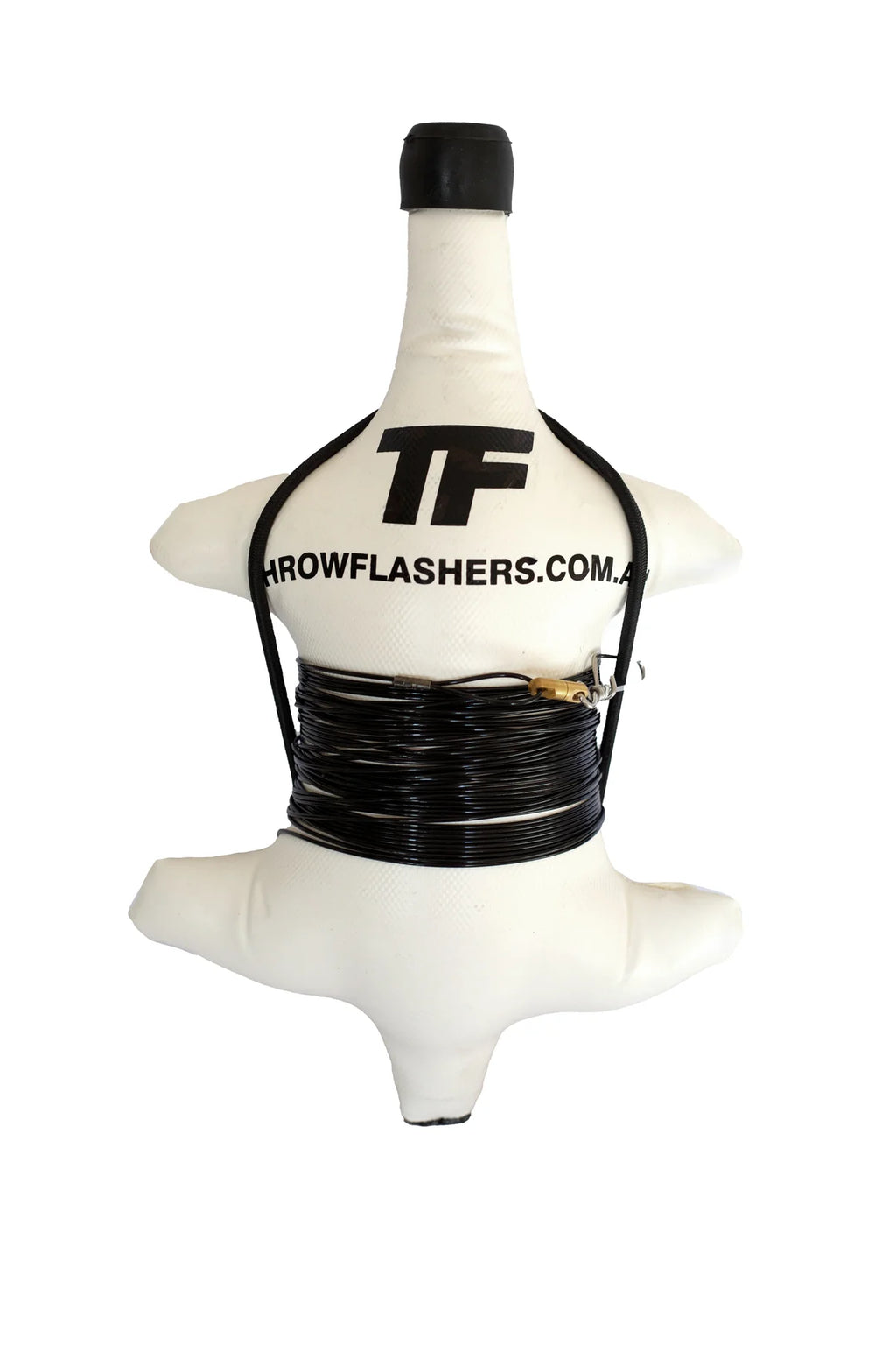 The Throwflashers Ladder Flasher Float is engineered to suspend your flashers at optimal depths throughout the water column, maximizing visibility and attraction to target species. Pre-rigged with premium 2.0 mm black monofilament line and a heavy-duty snap clip, this setup eliminates rigging time and delivers immediate reliability in demanding spearfishing conditions.